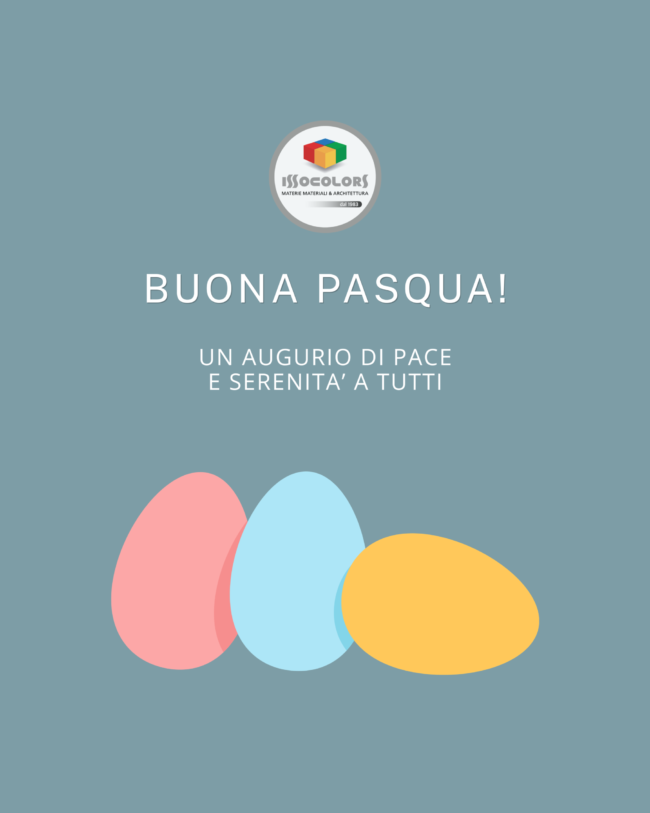 Nuove sfumature, nuova energia, nuove ispirazioni Buona Pasqua da Issocolors. I magazzini e lo showroom saranno chiusi solo il giorno di Pasquetta, lunedì 6 aprile IssocolorsLun-Ven 7.30-12.00 | 14.00-19.00 e Sab 7.30-12.00Via Leonardo da Vinci 301-302, Barbata (BG)0363 914007 | info@issocolors.itWhatsapp +393397250716www.issocolors.it